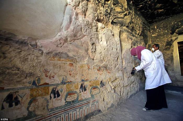 Найдена великолепно сохранившаяся мумия женщины в покрытом росписями саркофаге эпохи XVIII династии. Второй саркофаг, выполненный в стиле «риши», - более древний, создан при правителях XVII династии. В нем был погребен мужчина, жрец занимавшийся бальзамированием тел членов царской семьи.