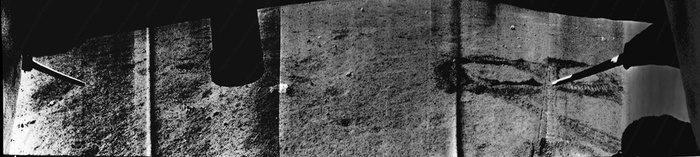 Теперь попробуем найти ее на спутниковых кадрах LRO. Но для начала, попробуем восстановить конфигурацию следов, как ее видно на панораме.
