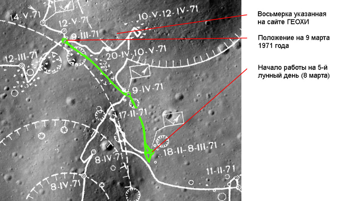 Теперь мы знаем, что искать лунную восьмерку надо там, где начался путь "Лунохода-1" на пятый лунный день.
