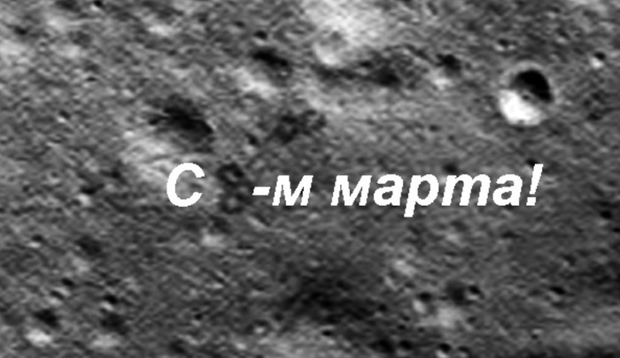 Самая большая поздравительная открытка к 8 марта - это Луна. В 1971 году, желая поздравить своих женщин-коллег, операторы "Лунохода-1" начертили "8" на поверхности Луны. Путь "Лунохода-1" известен, а его следы можно найти на снимках спутника NASA LRO. Сегодня, в честь праздника, попробуем найти эту восьмерку.