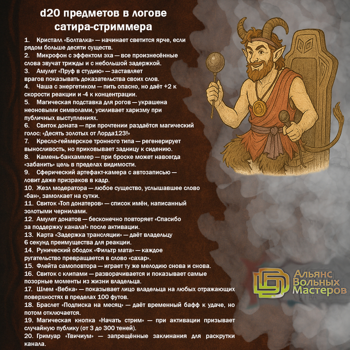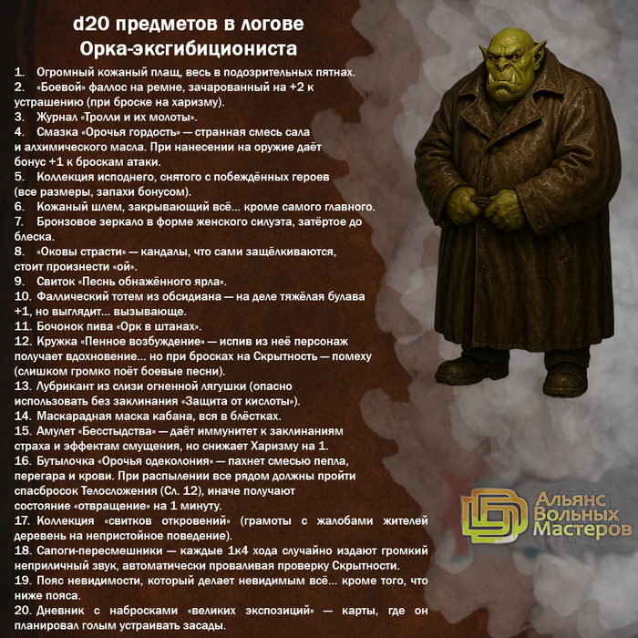 Лут в D&D — это не просто груды золота и "мечи +1". Это истории, развитие вселенной и незабываемая атмосфера за столом. Иногда предметы могут быть нелепыми, вызывающими или даже слегка неприличными — и именно это делает мир живым.