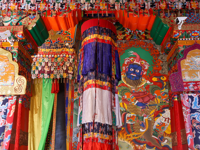 Особенно впечатляют флажки Лунгта. Яркие, разноцветные, с изображением коня, несущего драгоценности. Ветер колышет ткань, и местные говорят: чем бледнее флаг, тем успешнее молитва достигла неба. Стоишь среди этих флагов, смотришь на купол разноцветной ткани, слышишь шорох и понимаешь: здесь каждая деталь работает на эмоции, на внутреннее ощущение гармонии и спокойствия. Местные верят, что ветер буквально считывает мантры.