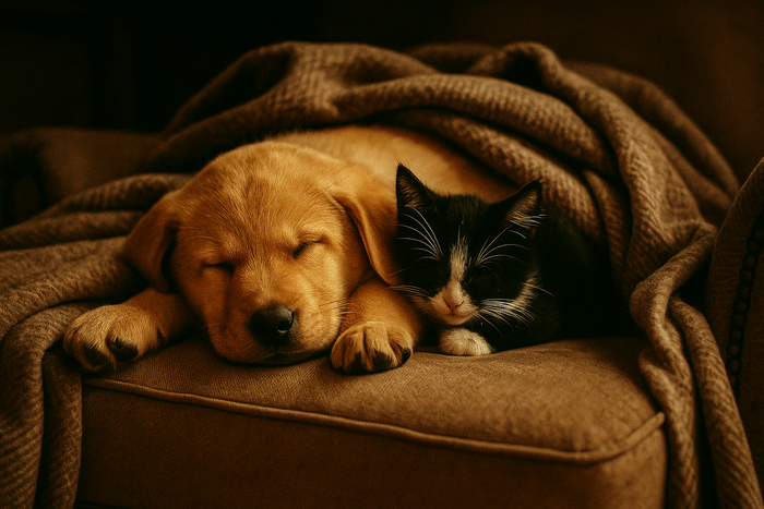 Они сидели вдвоём. Пёс и кот. Молчаливый надзор. Никто не мяукал, не гавкал, не скакал. Просто сидели. Как будто между ними была заключена сделка. Или договор. Временный. Но честный.
