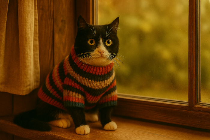 Вечером всё выглядело мирно. Варя пила чай у окна, бабушка вязала на диване, Мостик спал клубком на коврике. Пиксель сидел на подоконнике, дремал, иногда дёргал усами, будто проверял: никто не смотрит?