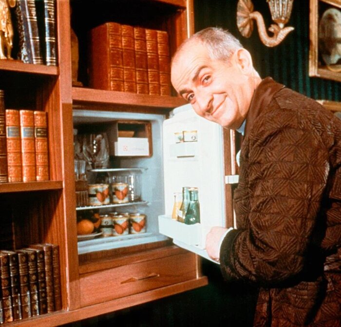 Эпизод с Барнье и чемоданчиком придумал для пьесы Клод Манье, фильм же сделал фрагмент бессмертным, под музыкальную классику и с подачей де Фюнеса, получилось канонически удачно.