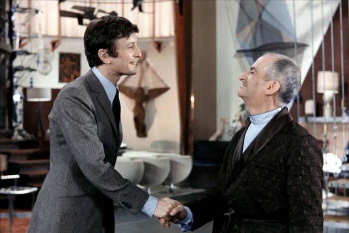 Совместные сцены с Жермен были хороши и зашкаливали за отметку очень потешно. Молинаро грамотно использовал контраст дуэта Луи и Клод, изводя актрису на репетициях, вызывая привыкание к де Фюнесу и его неординарному стилю, в итоге Клод Жансак в своей наивной простоте была на диво хороша.