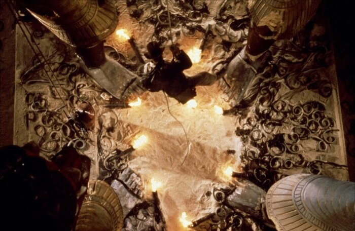 МНЕНИЕ: Так уж вышло, что в более зелёные времена моего киноманского детства любовь к Индиане прошла мимо меня, естественно фильмы я смотрел, и получал удовольствие, но всегда больше тяготел к жанру зрелищного боевика, и был готов всех археологов променять на выживание неудачливого полицейского в небоскрёбе, захваченном террористами, или на противостояние инопланетному охотнику в джунглях. Так, что в своей оценке я беспристрастен - это жанровый шедевр, увлекательное и простое кино с харизматичными актёрами и неуемной динамикой, которое не смотря на свою общую старомодность, и многочисленные сюжетные огрехи, вызывающие лишние вопросы особо вредного зрителя (как он умудрился спрятаться на подводной лодке) и сегодня великолепно справляется со своим непосредственным предназначением - развлекает, заставляет переживать за героев, воодушевляет. Съёмки на натуре и в декорациях, старые-добрые практические спецэффекты, каскадёры, молодой Харрисон Форд, въедливая музыкальная тема от Джона Уильямса, тогда ещё голодный и амбициозный Спилберг с режиссёрским скиллом, традиционный хэппи-энд с намёком на будущие приключения. Настоящий кинематографический артефакт былых времён, ставший неотъемлемой частью поп-культуры, за которым даже охотиться не надо.