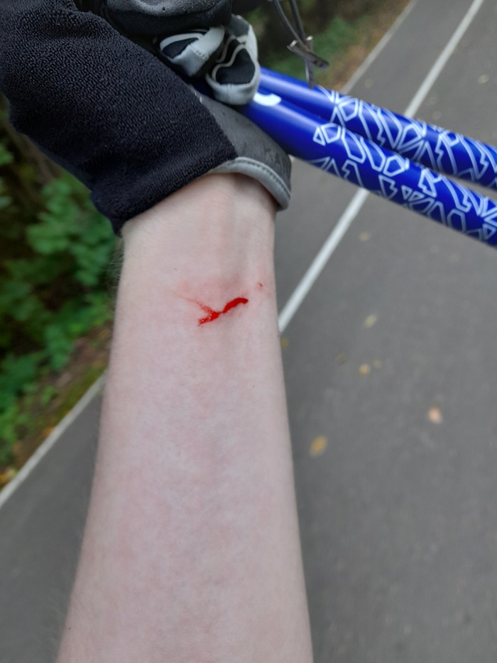 За это лето упал 4 раза. И в первый раз перчатки меня не спасли, стёрлись и за ними стёрлась кожа кисти. Так же можно упасть куст и получить порез. Шрам от пореза остался, будто пытался вены вскрыть. Незнаю поверят ли мне врачи когда увидят.