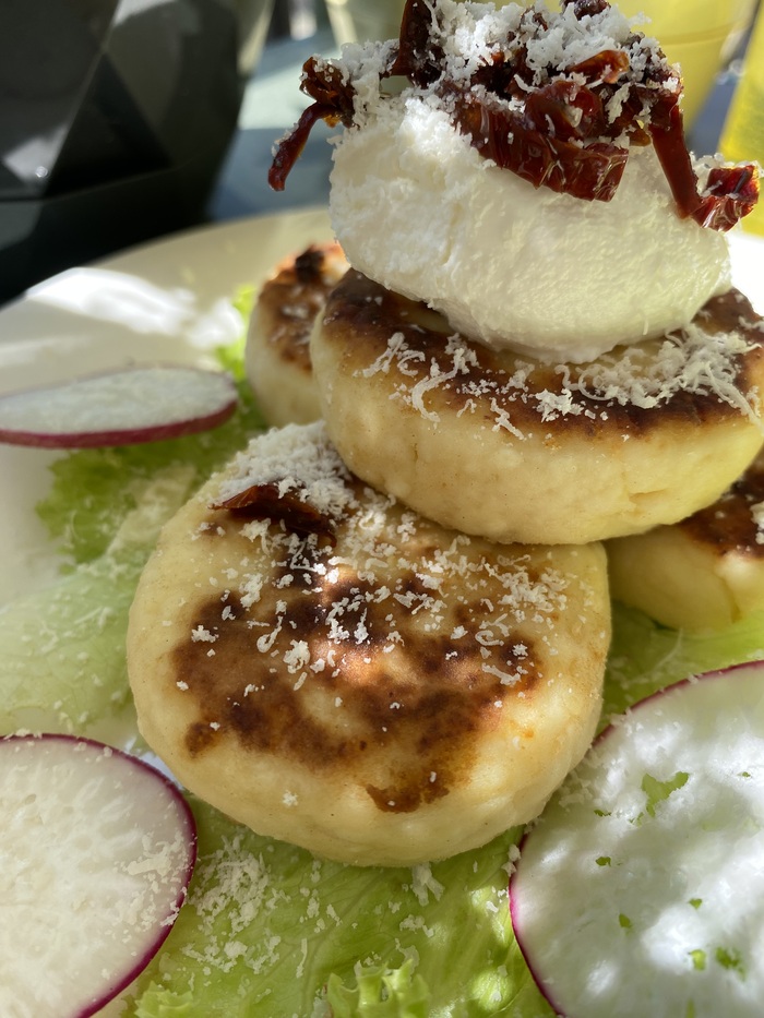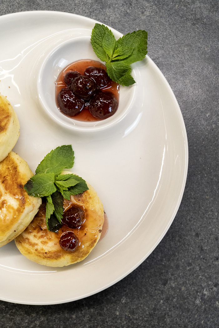 Всем привет друзья, хочу поделиться отличным вариантом для вкусного завтрака! Сырники можно приготовить по разному, их много рецептов и начинок. Я предпочитаю один из своих любимых рецептов ресторанных сырников, который я подглядел у шефа, когда ещё работал управляющим в ресторане. Соответственно в этот раз я решил по экспериментировать и сделать их с начинкой из черешни мяты и шоколада :)