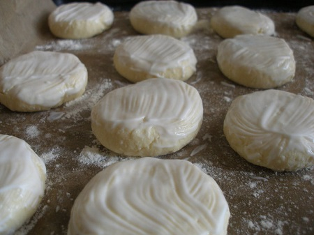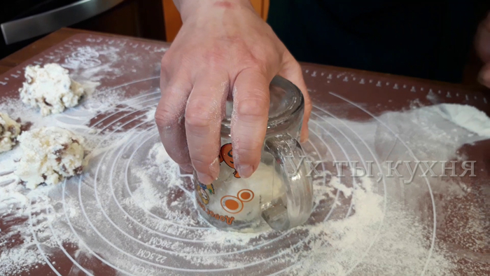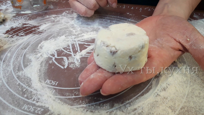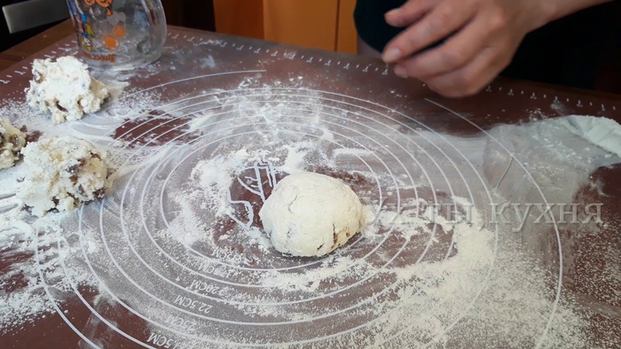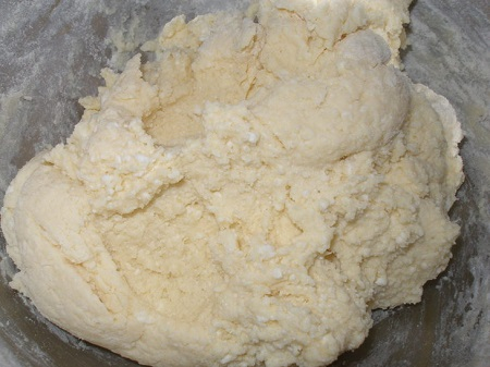 Мешал в кастрюле) посуды для замеса нет) было немного сметаны в запаснике,добавил в замес остатки)