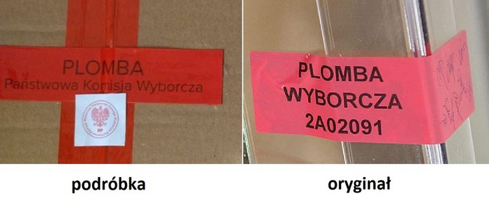 3. Польские фактчекеры из проекта FakeHunter отмечают, что бюллетень оформлен некорректно: «Оригинальная пломба Национальной избирательной комиссии так не выглядит, отличия видны невооружённым глазом. На настоящей печати изображён коронованный орёл, а вокруг него в форме круга надпись "Национальная избирательная комиссия" и две звезды»: