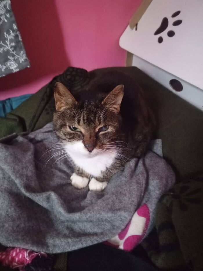 Четыре кошки в одной семье, остался одиноким в доме пятый, он на самовыгул не выходит, как оставшиеся, прячется дома, его укрытие я нашла совсем недавно. Его тоже заберёт эта семья, жалеют, что он совсем один там сидит.