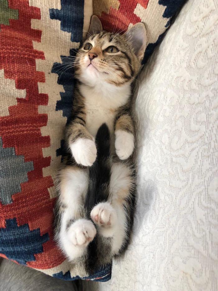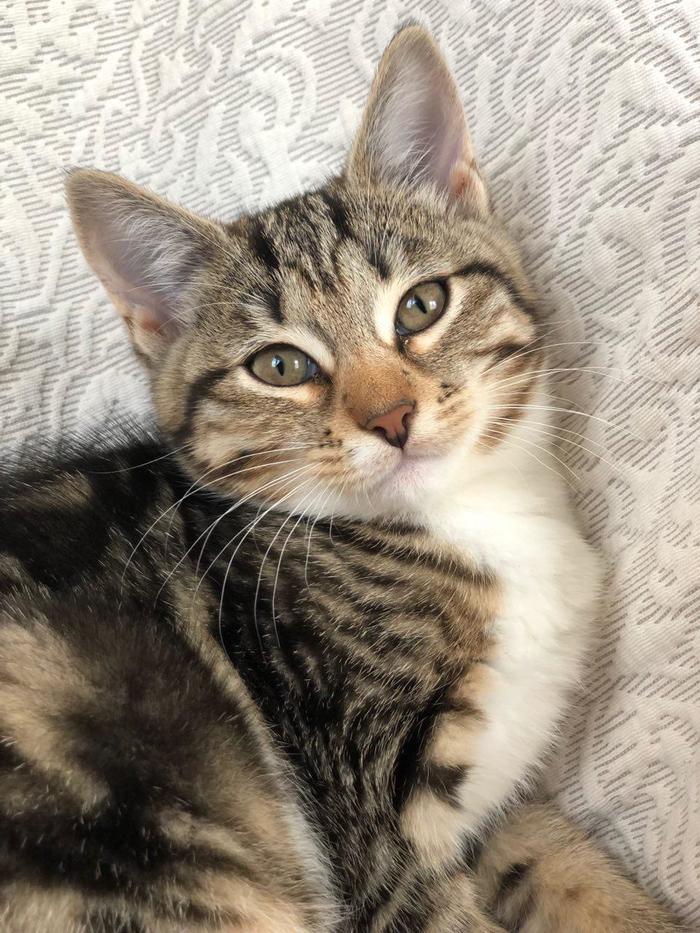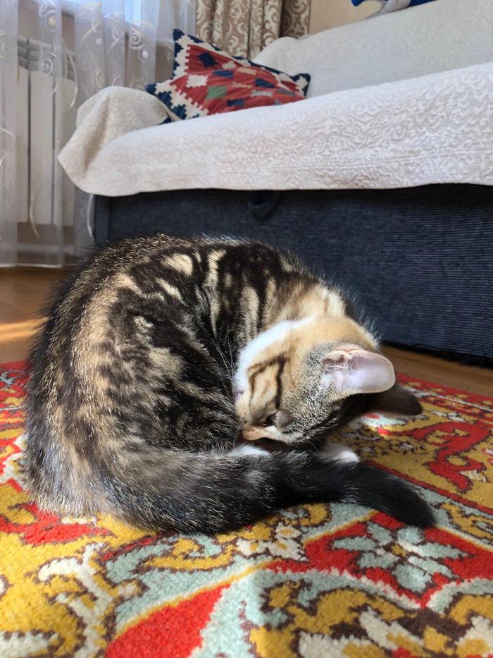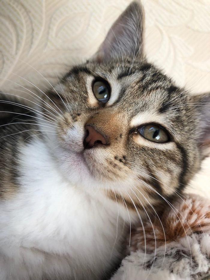 Взяли котенка с улицы, от всех паразитов избавили, сделали все прививки и завели ветеринарный паспорт. Девочке 4 месяца, игривая, ласковая, не конфликтует с другими питомцами( в доме кот и собака), к латку приучена.