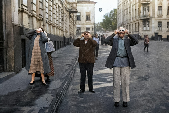 Жители Москвы наблюдают «Большое солнечное затмение», 1936 год.