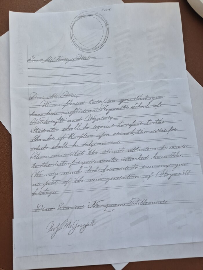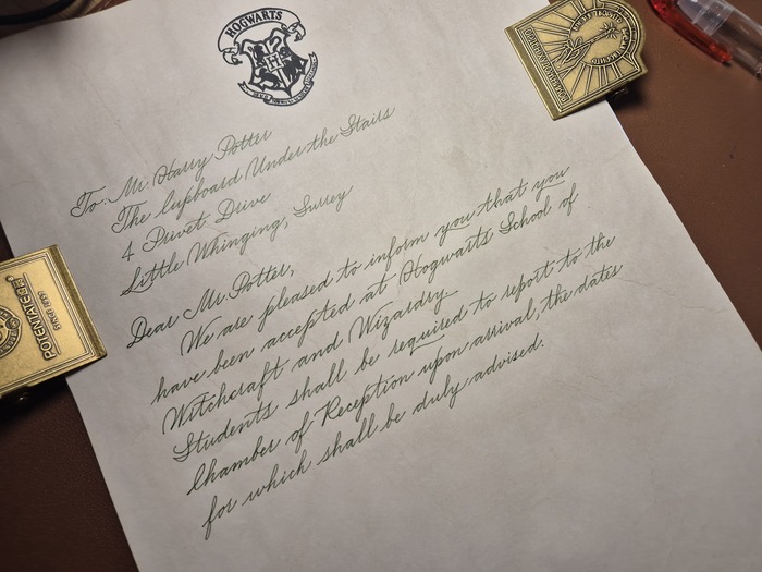 Всем привет! Я тут увлеклась каллиграфией и решила создать письмо из Хогвартса. Но не простое, а золотое. Точнее, почти полностью сделанное с нуля своими руками, включая написание текстов писем и отрисовку билета на поезд.