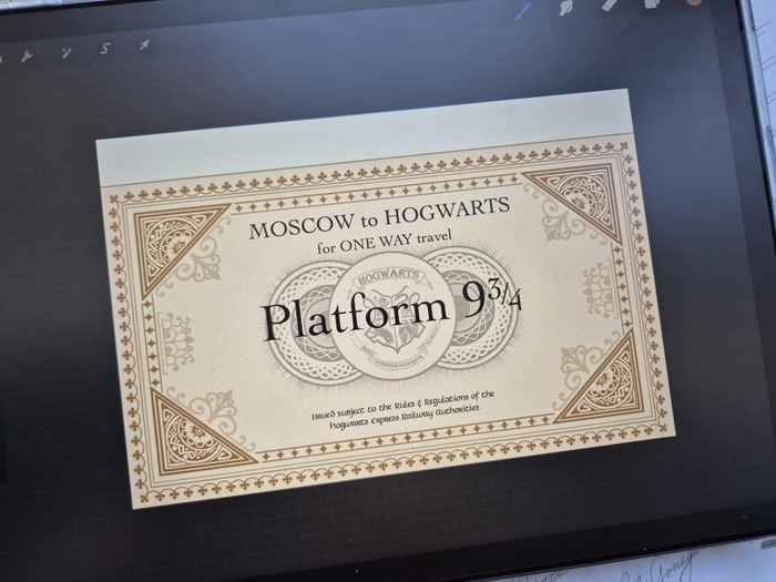 За основу брала доступные в сети рисунки других художников и стоп-кадр из фильма, где Гарри держит этот билет.
