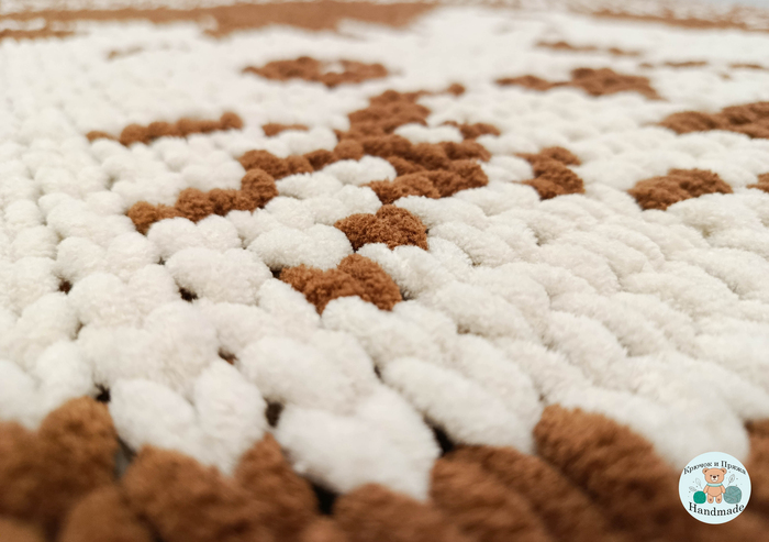 Как говорится, бог велел учиться! Вот и я несколько недель кряду вязала, распускала, опять вязала плед из пряжи, да не просто! С рисунком! 125 см на 140 см. Такой плед вяжется без крючка, просто руками. Пряжа используется толстая - 13 грамм на 1 метр. Наконец-то получилось! Жаль я не могу передать вам через интернет, какой он мягкий и теплый получился, его хочется трогать и трогать, завернуться и не вылезать!