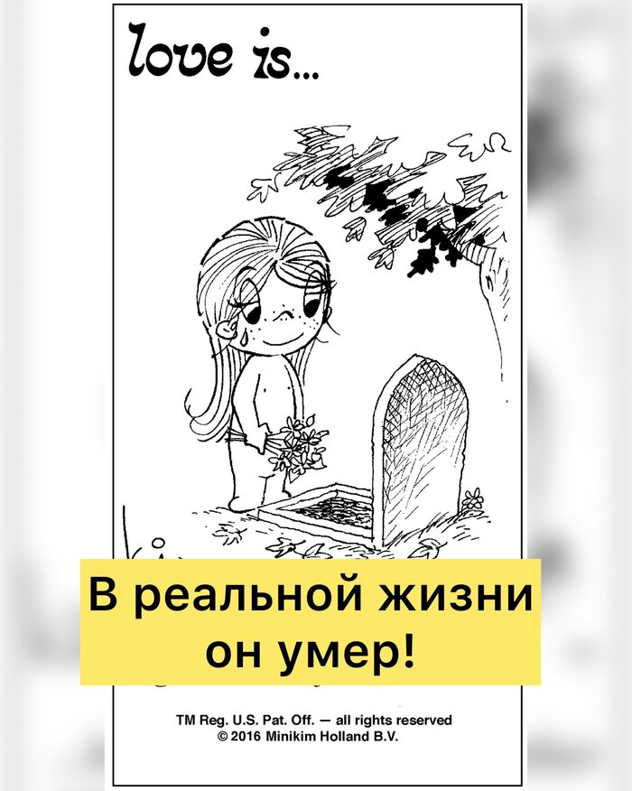 В начале 90х годов одна турецкая фирма начала делать жвачку со вкладышами, где были рисунки Ким и Билла. При чем никто никаких авторских прав не спрашивал. Сама Ким так и не узнала и популярной у нас жвачке «Love is», потому как умерла от рака костей и печени в 1997 году.