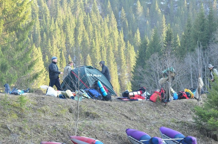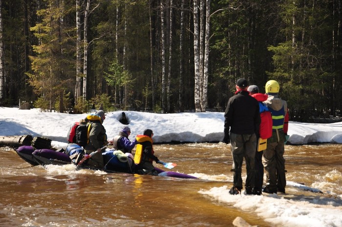 Следующий их шаг съездить за лодкой (т.к. с собой не было), я же сижу не унываю, все путем, не не шибко то и холодно, а ситуация начинает меня забавлять, т.к. первичный шок скажем так прошел. Спустя еще минут 20 приехали, сели в лодку, привязав её к канату, поплыли ко мне, но соре, они не учли течение и их сразу отнесло вниз по реке, я просто откровенно смеялся, может истерика ? (врядли), вернувшись по берегу минут через 10, они решают подняться повыше и уже с учетом движения реки подплыть:). В этот раз попытка удачная, они подплывают на лодки ко мне, помогают залезть, я собираю на скорую руку хабар и меня благополучно транспортируют на берег.