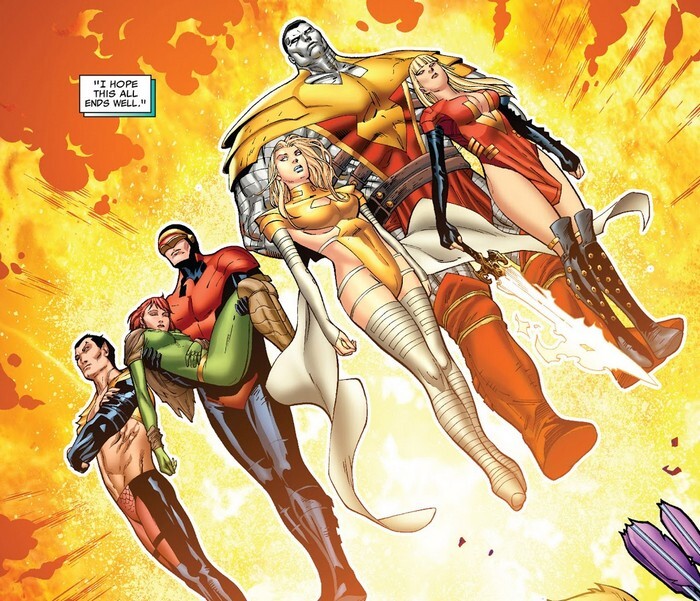Но давайте вернёмся к Людям-Икс в комиксе Uncanny X-Men #15, а то что это такое. Получив силу Феникса, пятеро Людей-Икс не сидят на попе ровно, а активно меняют мир. По идее, к лучшему. Где были безжизненные пустыни, теперь цветут сады. Крупные компании разоряются, ведь людям теперь доступны бесплатные и бесперебойные источники энергии и качественной пищи. Мстители объявлены вне закона. Пусть Хоуп и сдалась правительству, в ней теперь нет особой потребности, ведь всем заправляет Пятёрка Феникса. Утопия превратилась в настоящий футуристический мегаполис, над которым висит летающий остров – изначальная Утопия. Пока все наслаждаются золотым веком и изобилием, Колосс и Мэджик отправляются в Красный Космос, на поклон к Циттораку. «Слушайте, ваша Разрушительность, может, заберёте уже свой дар и силу Джаггернаута? – С чего бы это? Ты, Колоссонаут, в качестве героя причинил больше разрушений, чем все предыдущие носители силы Джаггернаута, чуть ли не вместе взятые! Таких ценных рабов...работников не увольняют!».