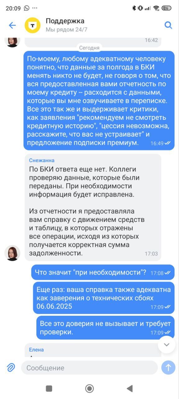Я уже рассказала эту историю подробно, но дала шанс сотрудникам Т-банка что-то прояснить, и пожалела об этом. Все выглядит очень плохо. Что ж, по-человечески я дала им шанс, теперь никакой пощады. Я не кровожадный человек, и мне не хочется, чтобы из-за недоразумений или ошибок кто-то пострадал. Но общение с сотрудниками Т-банка бросает вызов моим гуманистическим принципам.