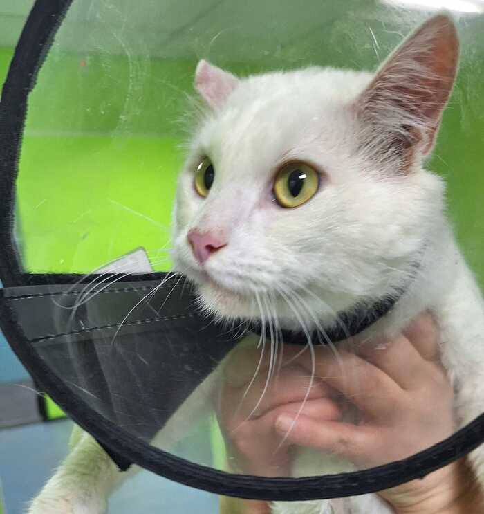 Кот лет 5 от роду...имеет выбитый клык...верхний .травмированы задний лапу ( ушиб ), сломанное ухо, и часть этого самого уха утраченные, огромное просто катастрофически огромное количество огроменных блох!