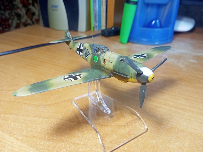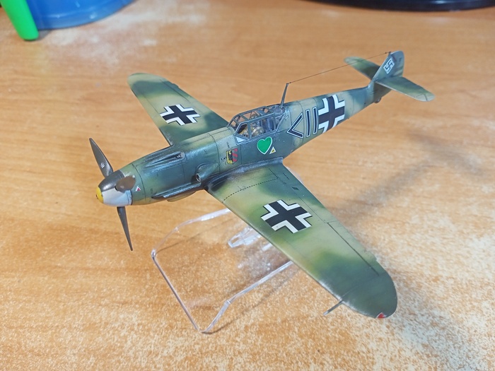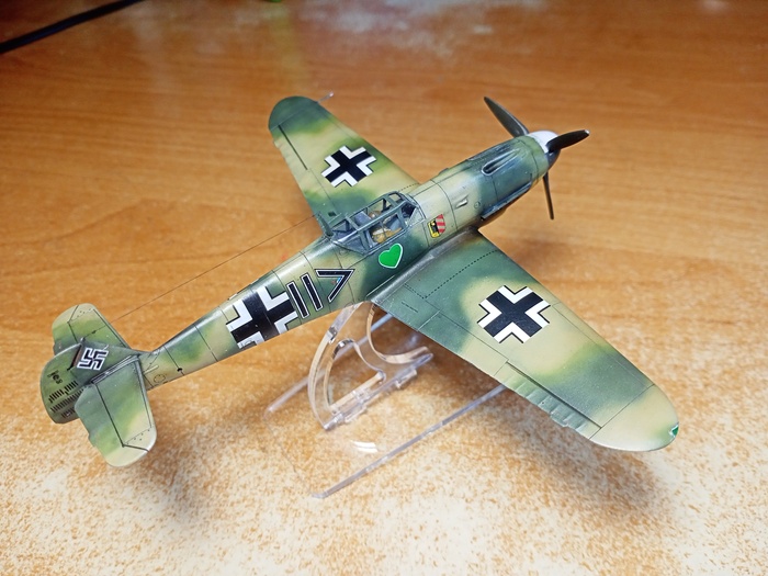 Представлена модель Messerschmitt Bf.109F-2 Friedrich Ганса Филиппа, командира .1/JG.54 Grünherz (1-й группы 54-й истребительной эскадры «Зелёное Сердце»), апрель 1942 года, Восточный фронт. Модель фирмы «Звезда», масштаб 1/72.