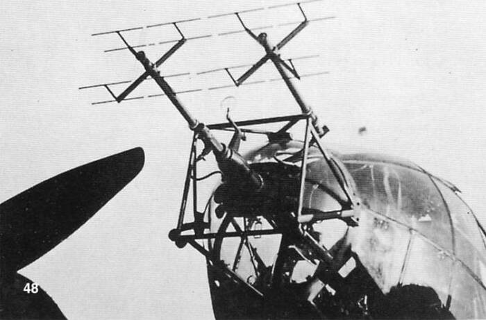 «Юнкерс» Ju 188D. На заводах в Бернбурге было выпущено небольшое количество самолетов серий D-1 и D-2. Они несколько отличались от бомбардировщика-разведчика Ju 188А, например, отсутствовала передняя пушка MG 151. Экипаж состоял из трех человек. Максимальный запас топлива вместе с подвесными топливными баками обеспечивал радиус полета 3395 км при скорости 480 км/ч на высоте 6000 м. Ju 188D-2 оборудовались локатором FuG 200 и фотокамерами, так же как и на Ju 188F-1 и F-2.
