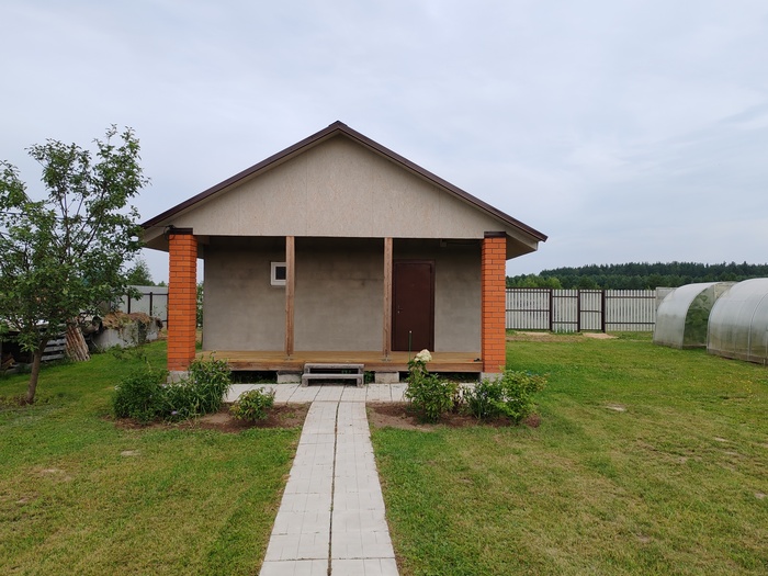 По зиме, после долгих поисков и анализа рынка, я заказал в одной псковской канторе сруб 6х4.ребята работали по договору и в интернете было много хороших отзывов об этой конторе. Наперед скажу, не видитесь ни в коем случае и не доверяйте тому, о чем пишут в сети, это часто совсем не показатель. В общем, в начале мая приехала моя узбекская бригада, мы залили ленточный фундамент с перемычкой для будущей стены, я сделал небольшую предоплату за сруб, и в конце мая ожидал доставку. Наступил конец мая, звоню в контру, там извиняются, говорят, что весь транспорт пока занят, но клятвенно обещают привезти в июне- верю. клюю на обещания, а тем временем, дерево начинает дорожать, цены растут каждый день, но я не волнуюсь, ведь у нас договор, предоплата сделана. В общем, в июне я получаю дырку от бублика, потом наступает июль- жду и в один день мое терпение заканчивается, выхожу на владельца компании, который мне предлагает выкупить мой сруб по цене, дороже на 50% той, что прописана в договоре и дает понять, что ему абсолютно наплевать, что там (в договоре) прописано, что у него все схвачено, он готов судится. Понимаю, что нет времени ехать на псковщину и разбираться (очевидно, что изначально на это и был расчет), поэтому каким-то чудом выбиваю свою предоплату, а еще, выслушал в свой адрес кучу оскорблений от этого неадекватного, извините, м….а. Признаюсь, что после этих разговоров, мне захотелось все бросить, собрать друзей, поехать, найти этого товарища и устроить ему встречу с названием «привет из 90-х», но подумав, успокоился, позвал старую бригаду, и мы к завершению сезона построили баню 6х4 с верандой 6х2 из КББ, и, скажу я вам, что все замечательно получилось.