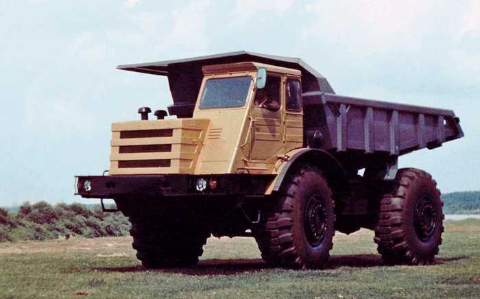 Самосвал МоАЗ-522 (4х4) грузоподъёмностью 18 т, 1962 год. На облицовке можно разглядеть выштампованные буквы ЗиК — «Завод имени Кирова».