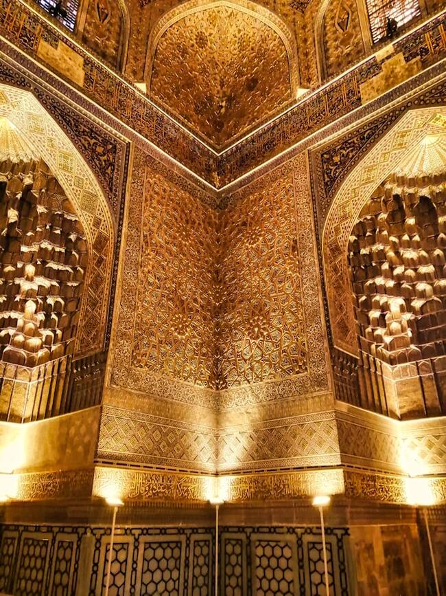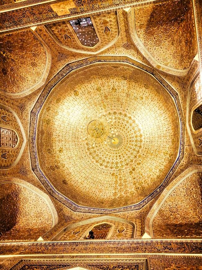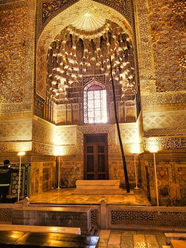 Вход на территорию и во внутренний зал – платный. Но тут посещение больше для галочки – побывал в известном месте. Внутри пара залов, в главном из которых стоит надгробие Тимура, и еще одно помещение с сувенирами и несколькими экспонатами.