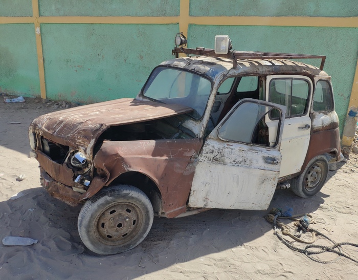 Это то, что осталось от крушения корабля Союз Малика. Корабль сел на мель в 2003 году на месте, используемом в качестве кладбища кораблей.