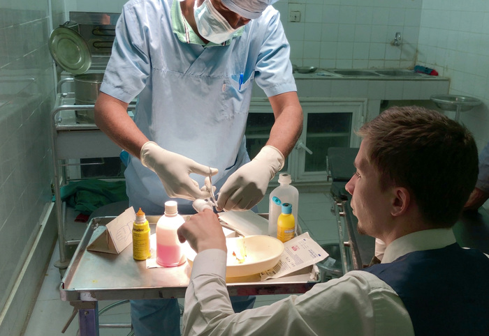 Искали в аптеках пластырь, но там было пусто. Тогда решили зайти в местную больницу - там оказалось все очень хорошо: чисто, просторно. Пришёл врач в сопровождении двух медсестёр и залатал палец Василия с соблюдением всех санитарных норм. Да ещё и бесплатно, с улыбкой на лице. Очень приятно видеть такой подход. (Желтая бутылочка - это не горчица, а йод).