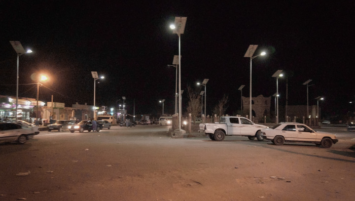Вечером на улицах этого затерянного в пустыне города Атар зажигаются уличные фонари. Это конечно не Лас-Вегас, но все же здорово видеть, что фонари оснащены небольшими солнечными панелями.