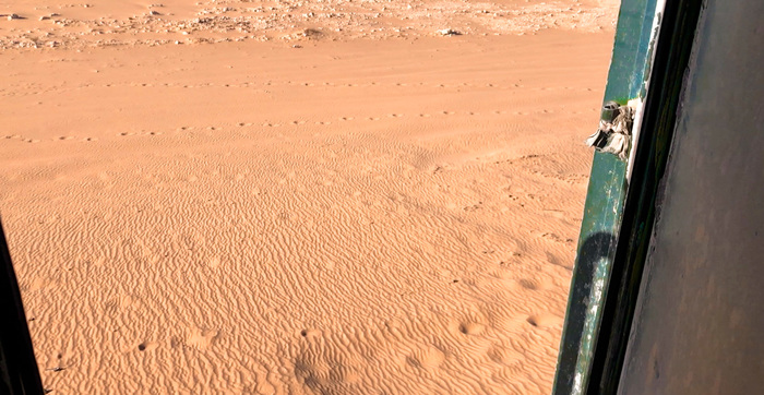 Особенно этот сюрреализм был прочувствован, когда я проснулась на полу локомотива, который гнал через Сахару. Посмотрела в иллюминатор - а там пустыня и ветряки. Сами скажите - это кадр из Кин-дза-дза или фото Алины Титовой?