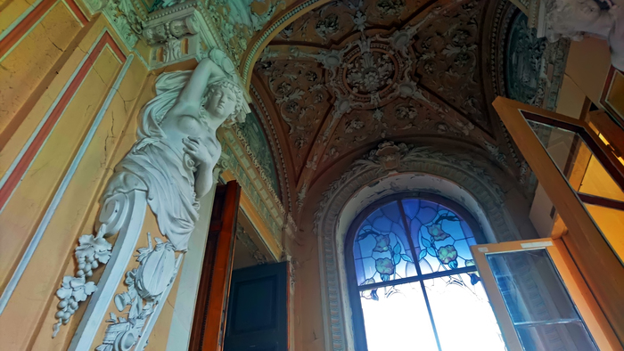 И вот наконец-то я совершила задуманное - попала в этот особняк и погуляла по роскошным интерьерам. Сначала расскажу как же я туда попала. Особняк в данный момент закрыт для всех, причем исключений нет даже для экскурсий и работников кино. После одного случая, когда киношники раздолбали тут пару люстр перестали пускать и их, хотя ранее этот особняк снимали во многих фильмах и сериалах. По крайней мере так сказала охрана и трубят соцсети. Попасть туда я надеялась процентов на пять, но все оказалось проще и попали мы туда банально сказав правду. Увидели телефон охраны на двери, позвонили на пост в соседнем здании, сказали, что мы туристы из Москвы, то что мы с мамой путешествуем в поисках старинных особняков и исторических мест всю свою жизнь. Поныли о том, что много лет мечтали увидеть эту красоту и в дополнения я вывалила все, что когда либо читала об этом месте и вуаля!
