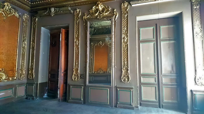 Очень много раз я слышала истории как охрана ловила мародеров, которые по ночам искали клады и рушили стены, вскрывали полы и копали ямы в саду! Охранник лично поведал такую историю, как отправили в участок местного искателя клада. Любители мистики и вовсе утверждают, что в темное время суток тут лучше не ходить, мол из здания доносятся какие то крики и непонятные звуки, но я уверена, что это либо мои коллеги по цеху, либо такие вот "кладовщики". В общем люди до сих пор частенько пытаются там что то выискать и не удивительно, что три охранника ходили за нами по пятам и не выпускали из вида. НО ЧОПы оказались очень хорошими мужиками, провели нам целую экскурсию и мы сошлись на мнении, что это все очень печально, что власти не могут выделить бюджет на реставрацию такого места! Что вся эта подлинная красота и история 19ого века гниет и рушится под тяжестью времени и безразличия.