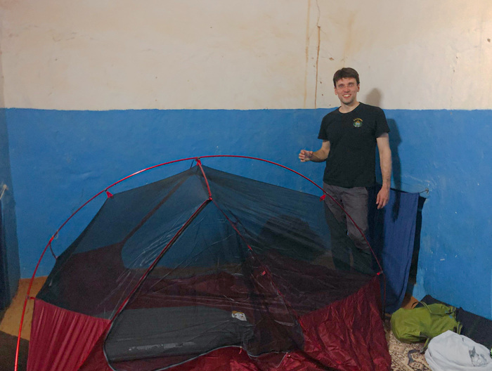 Из минусов - комары по вечерам. Они везде. И повсюду. Пришлось ставить палатку прямо в той комнате, где мы остановились.