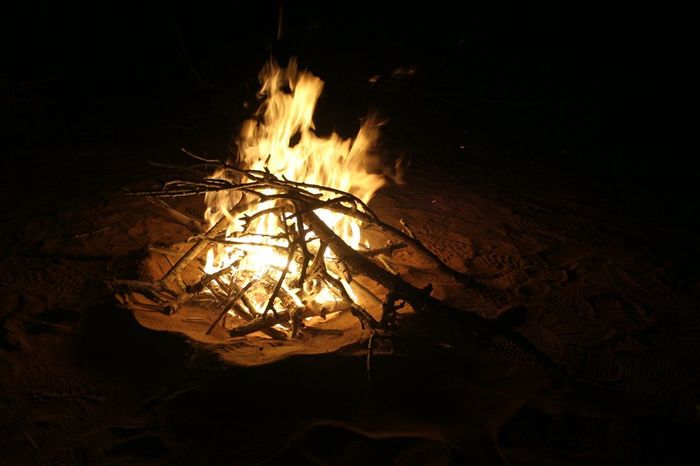 Тут надо пояснить – палаток у нас с собой не было (только у Оли), и спали мы просто в спальниках, уложенных на коврики. В принципе, у нас с собой был шатер, но его поставили раза два, а больше, к сожалению, не стали. Почему – фиг знает. Говорили, что типа времени много, но, вероятнее всего, просто лень всем было. Так что от песка ничто не защищало. Я решила вопрос радикально: втянулась в спальник с головой, отверстие для дыхания заткнула флиской и попыталась доспать остаток ночи. Получалось так себе – ветер адски выл, спальник засыпан песком, короче - мрак и ужас. В довершение праздника утром мы толком не смогли позавтракать, так как чай согреть в условиях бури невозможно.