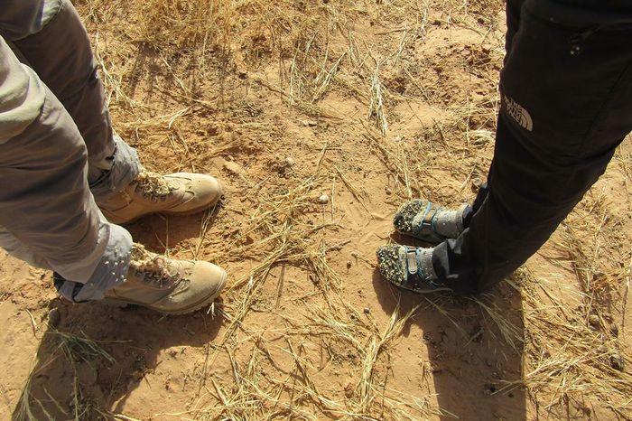 В общем, самое трудное в пустыне - это вовсе не температура, а необходимость сохранить свои ноги целыми. Они там страдали очень серьезно. Во-первых, адски отекали. К вечеру ботинки становились малы на пару размеров, а кожа на стопах стала напоминать копыта. Хотелось разуться и сунуть ноги в снег. Мне очень хотелось на все это жаловаться, но никто бы меня не пожалел, потому что у большинства участников нашего похода ноги превратились в кровавые лохмотья(
