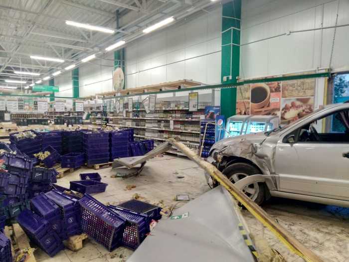 Но на его беду автоматические двери не открылись и он в них врезался, частично разбил, а потом испугался последствий и сбежал с места событий.