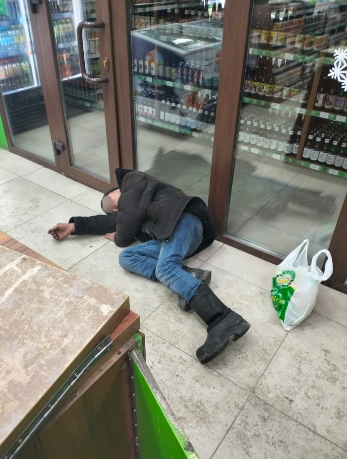 Стою на кассе, в это время между кассами и выходом администратор и кассир (обе женщины) прессуют гражданина лет 35. Тот пытался вынести бутылку коньяка в рукаве куртки. Судя по разговору, ворует он не в первый раз и сегодня днём уже утащил пачку фисташек. Женщины попались не робкого десятка, крепкие на фигуру и на голос, гражданин бухой, но наглый. Пузырь отобрали, велели сваливать из магазина, иначе "охрана, полиция, армия и вертолёты" Бухие мозги вроде понимают, что эскалировать конфликт не стоит, но и лицо терять не хочется. Поэтому тянет руку к пузырю со словами "Ну дайте, а?"