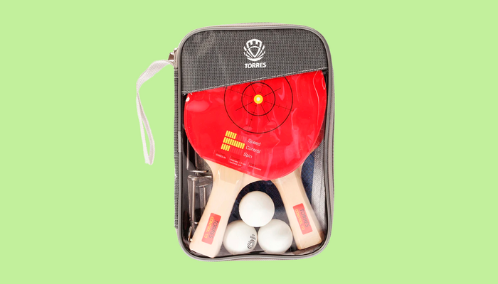 Настольный теннис — простой в освоении вид спорта, который отлично помогает размяться и тренирует скорость реакции. В комплект входят две ракетки, три мяча, сетка, накладка и чехол — все, что нужно, чтобы поиграть вечером во дворе с другом или устроить небольшие соревнования. Этот недорогой набор подойдет именно для развлечения и веселья, устанавливается почти на любой стол.