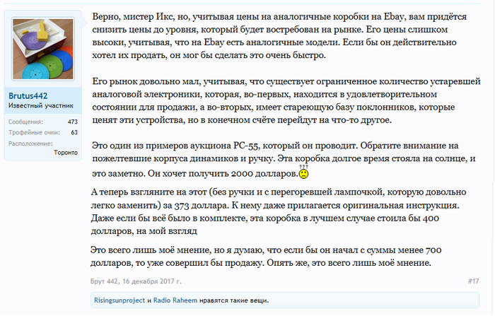 Участник обсуждения под ником "Радио Рахим" типичный фанат старой радиоаппаратуры.