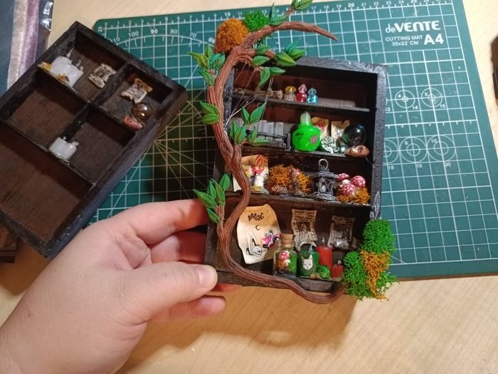 6. Думаю о том, как улучшить внешний вид подставки. Вспоминаю про стабилизированный мох, достаю его из закромов и начинаю крошить.