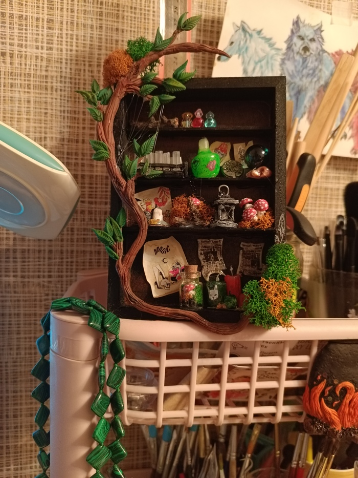 Материалы: полимерная глина, фольга, алюминиевая проволока, краски акриловые, лак акриловый, мох стабилизированный, немного терпения.
