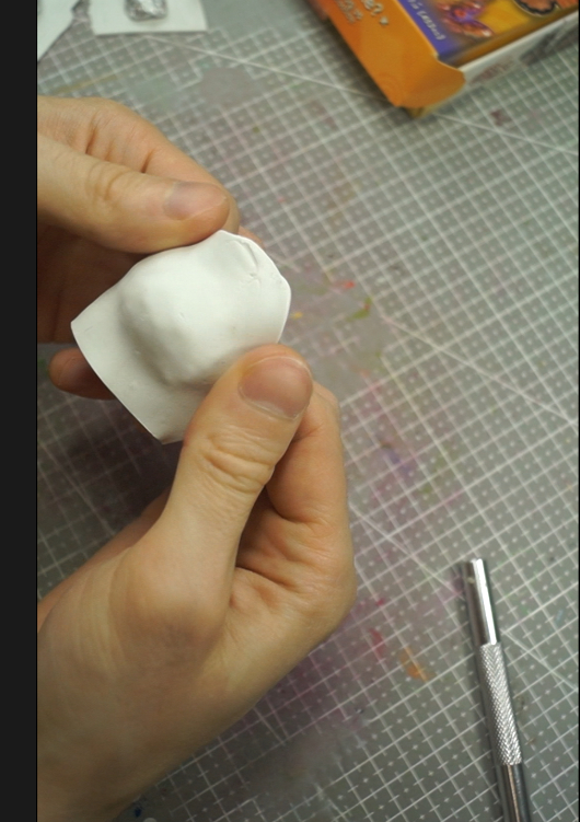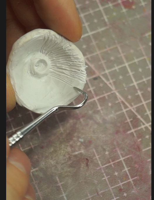 А теперь нужно нарисовать бороздки, для этого мне понадобится игла или же просто инструмент по типу иглы. Далее смазываю жидкой пластикой грибной коннектор, соединяю с ножкой и отправляю в печь.