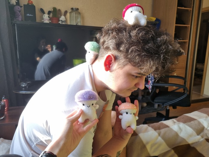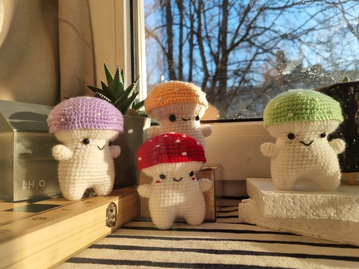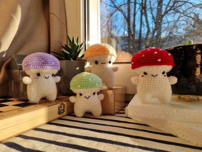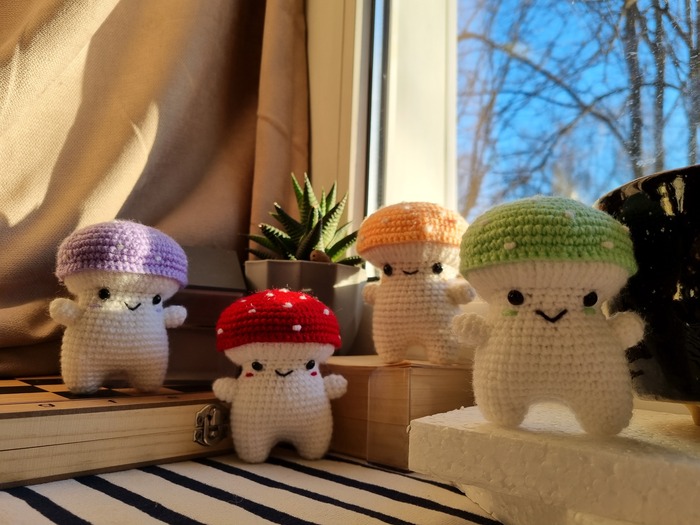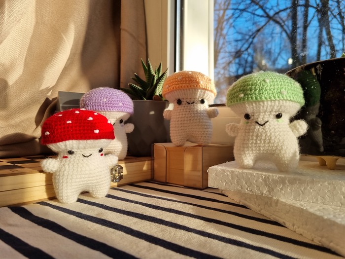 Обожаю вязать грибочки, мне кажется, это очень милые и нестандартные игрушки. В нашей группе Вы можете найти 3 различных варианта грибочков, и каждый из них я люблю по-разному.