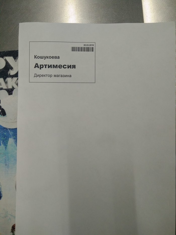 Ни бейджика, ни каких то других опознавательных знаков на ней обнаружено не было, а представилась она сначала администратором зачем-то. Как по мне, так "ДИРЕКТОР" звучит более пафосно и гордо. Ну да ладно, может скромный человек и не любит дешёвые понты?! Бейджик она мне все таки предъявила по моему требованию, распечатав на листе А4 и кинув его в эту хрень, куда складывают уже пробитые товары.
