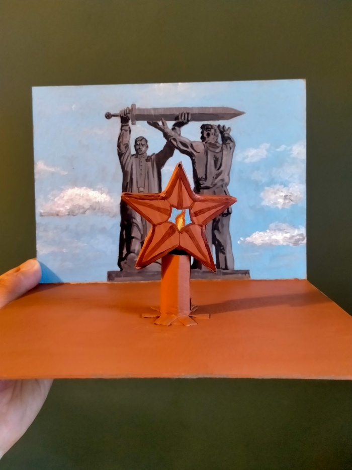 Немного помог сыну сделать поделку ко Дню Победы )) сын с мамой вырезали и склеивали звезду, а я нарисовал знаменитый памятник